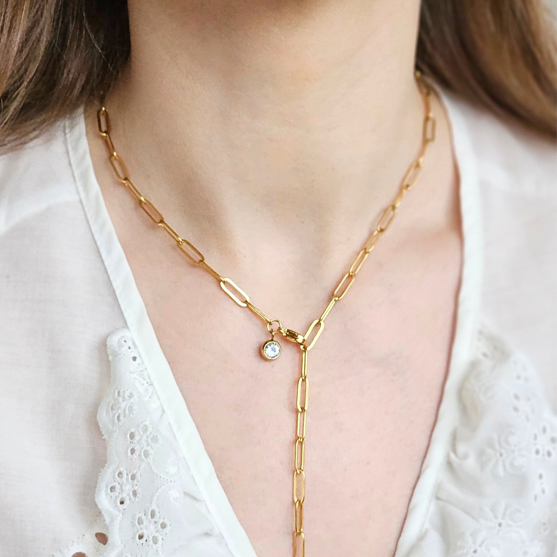 Dzięki swojej długości daje wiele możliwości stylizacji — możesz nosić go klasycznie jako długi naszyjnik lub zapiąć na wybranym ogniwie, tworząc efekt wiązania à la krawat. To biżuteria, która dopasowuje się do Ciebie i Twojego stylu, pozwalając na swobodę i kreatywność w codziennych stylizacjach.